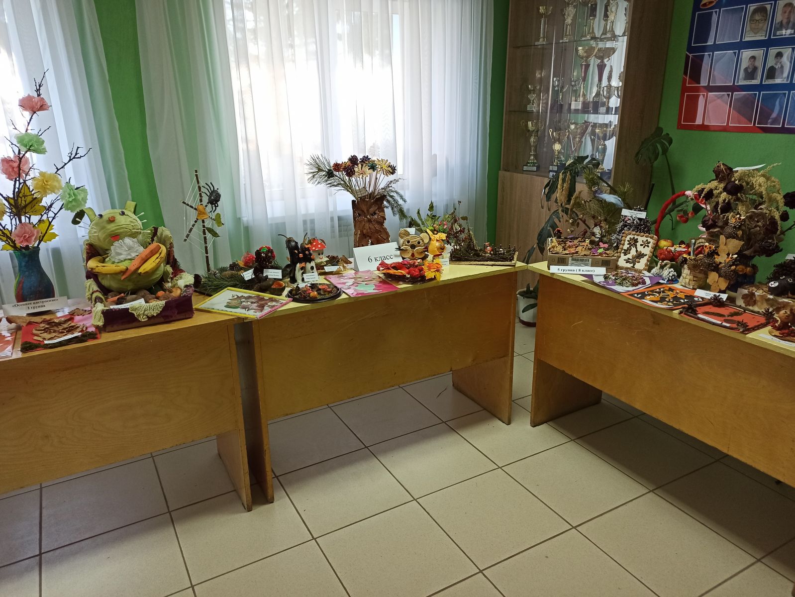 На выставке было представлено огромное количество работ в различной технике исполнения: аппликация, оригами, икебана, квиллинг, различные панно, гербарии. Так же поделки из овощей и фруктов, шишек, листьев, цветов и других видов природного материала.