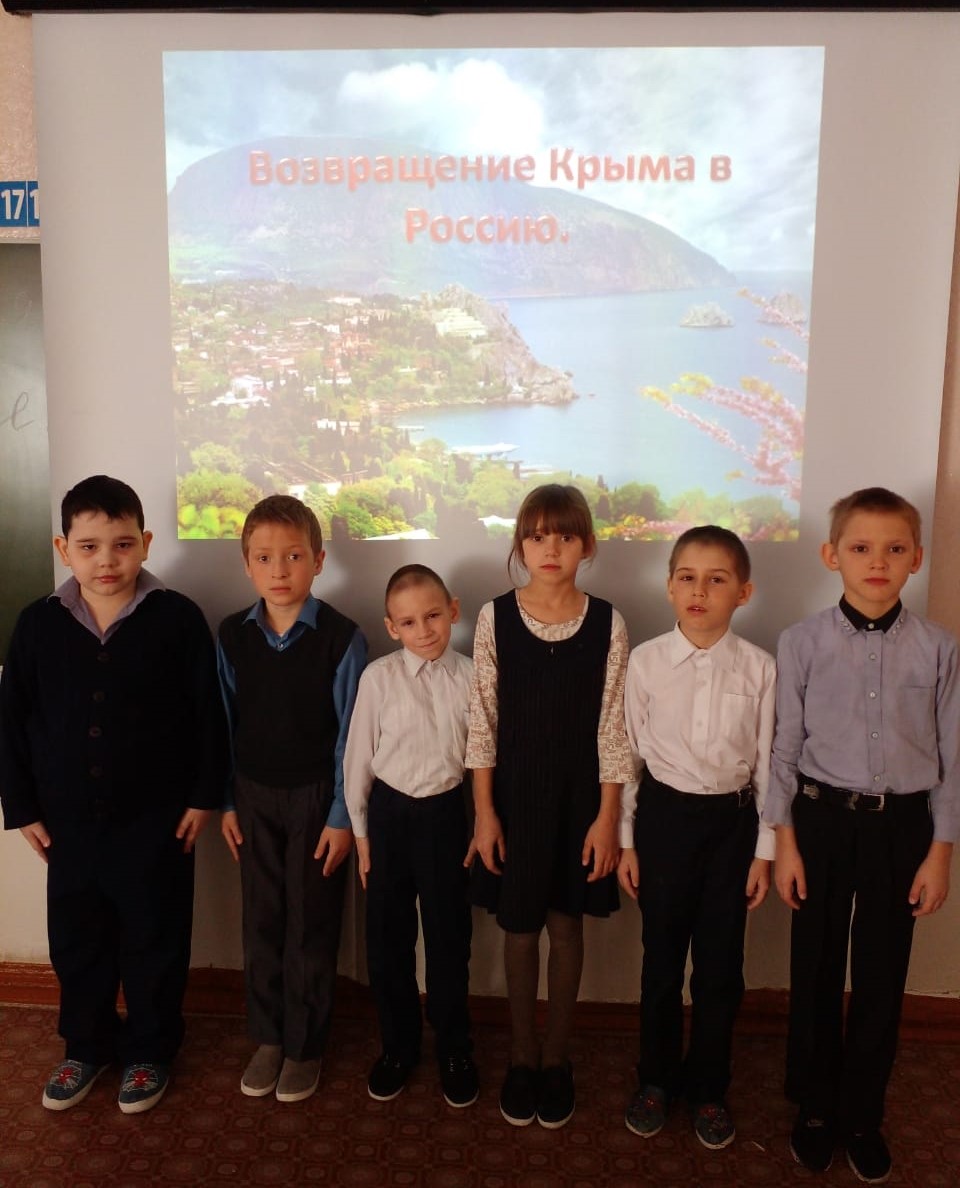 В 3-4 классах прошел классный час на тему: "Россия и Крым вместе!" В ходе классного часа учащиеся узнали об истории Крыма. Познакомились с событиями, предшествующими воссоединению Крыма с Россией.