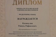 Поздравляем Калимулина Равиля ученика 4 класса АНО ОО «Прогимназия №14», который стал Призером Республиканской олимпиады школьников по русскому языку и участником заключительного этапа Республиканской олимпиады по окружающему миру в городе Казани. Олимпиады по данным предметам были организованы с целью выявления наиболее подготовленных обучающихся, имеющих особые способности по предмету «Русский язык», «Окружающий мир», развития внимательности, памяти, общего кругозора. Поздравляем!!!!