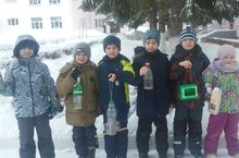 Ребята 1 класса с радостью изготовили и развесили кормушки на территории города вокруг прогимназии.