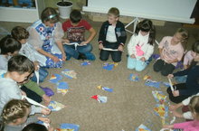 С помощью игры на деревянных ложках, учащиеся имели возможность демонстрировать свое чувство ритма- сыграли целую музыкальную композицию. В завершении праздника организаторами был проведен мастер – класс по изготовлению кукол из обыкновенной ложки. Сидя в кругу ребята старательно украшали ложки лоскутками яркой ткани, а домашним заданием стало – нарисовать лицо и придумать имя своей новой игрушке.