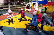 11 мая во время прогулки состоялась игра «Мини - футбол» в средней группе АНО ОО "Прогимназия №14".