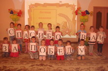 Предварительно с детьми в группах были проведены занятия, беседы о подвигах советских людей, в группах были оформлены выставки детских работ, оформлены родительские уголки, а праздник стал итогом этих мероприятий. Дети показали танец «Синий платочек», упражнение с флажками и цветами «День Победы», пели песни «В День Победы», «День Победы», «Победный марш», «Пусть всегда будет солнце». А также соревновались в эстафетах «Санитарки», «Марш-бросок». Дети вспомнили пословицы о силе, отваге, о солдатах.