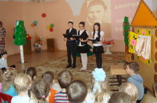 Прогимназиянең 4 нче сыйныф укучылары Г.Тукай иҗатыннан “Шүрәле”, “Су анасы”, “Кәҗә белән Сарык” өзекләрен сәхнәләштерделәр. “Бала белән Күбәләк”, “Кызыклы шәкерт”, “Гаилә”, “Гали белән Кәҗә” шигырьләрен 4 һәм 7нче төркем балалары сәнгатьле итеп укыдылар. Аеруча аларга Мифтахова Софья башкаруында Г. Тукайның “Бишек җыры” ошады.