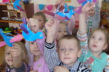 У ребят получилась целая стая Птиц Счастья. Эти птицы несут на своих крыльях удачу в делах, радость, мир в доме - все самое хорошее. Ребята подарили их сотрудникам детского сада и ученикам.