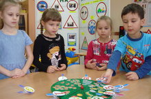 Воспитатели по обучению татарскому языку (Мифтахова Ф.Н., Сахибгареева А.Р.) разработали авторскую дидактическую игру «Поле чудес» по обучению детей второму государственному языку (с учетом требований УМК и ФГОС) для детей дошкольного возраста. Основной задачей данной игры является закрепление словарного минимума в непосредственно игровой и самостоятельной деятельности детей (от 3-7 лет).