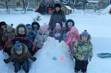 Да, да, да!Без внимания не остался и участок для прогулок - украсили снежными постройками, повесили яркие гирлянды.