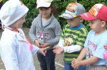 "Посмотрите, какое замечательное солнце! От его света мир становится прекрасней. Протяните ладони к солнышку, погрейте их. Прикоснитесь к своим щекам. Вы видите, что солнце золотое. Как еще можно сказать о солнышке, какое оно, с чем его можно сравнить?" - так начался день в группе № 8 АНО «Прогимназия № 14», посвященный солнцу. После беседы воспитателя Шакировой Гульсиры Римовны о значении огненного светила, рисования солнышка нетрадиционными способами дети играли в дидактические игры: «Кляксы», «Выложи солнце», наблюдали за солнышком, обращая внимание на то, что на него трудно смотреть, такое оно яркое, так много даёт света, на явления «свет — тень», формируя представление о том, что когда светит солнце — на улице тепло. А после были организованы воспитателями подвижные игры: «Солнышко и дождик», «Солнечные зайчики», «Найди свой цвет», «День – ночь».