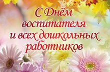 Поздравляем с профессиональным праздником воспитателей и всех, кто работает в сфере дошкольного образования! Именно вы, приходя на работу каждый день, дарите детям не только свою любовь и душевное тепло, но и вкладываете в них ценные знания, помогаете стать любознательными, добрыми, умными и счастливыми. Желаем вам неиссякаемого запаса энергии, терпения, мудрости и вдохновения! Пусть каждый день наполняется радостью, интересными событиями и прекрасными моментами!