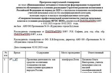 02.03.2021 г. на базе АНО ОО "Прогимназия № 14 «Журавушка» города Бугульмы состоялась виртуальная стажировка по теме «Инновационные методики и технологии формирования толерантной личности обучающихся в условиях реализации Стратегии развития воспитания в Российской Федерации на период до 2025 г.» программы повышения квалификации учителей начальных классов без квалификационной категории, имеющих первую и высшую квалификационные категории, «Совершенствование профессиональной компетентности учителя начальных классов в условиях реализации ФГОС НОО», реализуемой ПМЦПКиППРО КФУ с 8.02.2021 года по 19.02.2021 года.