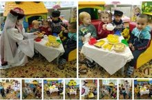 К малышам (1 гр) прогимназии "Журавшка" приходили Акбай и Мияу. Они принесли с собой угощения, татарские национальные блюда: балиш, эчпочмак, баурсак, бэккэн. Воспитанники слушали, как они здороваются, угощают, говорят спасибо, до свидания.