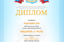 Воспитанник Ключевской НШ-ДС Асылгареев Аяз участвовал в Межрегиональном конкурсе "Рисунок" в номинации "Зимняя сказка", стал победителем и награжден Дипломом. Молодец, поздравляем!