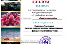 Диплом за 1 место в муниципальном фотоконкурсе "С улыбкой по жизни!" 12.11.2018