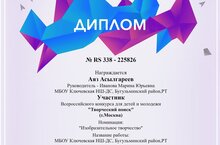 Ученица 2 класса Салимова Карина приняла участие в Республиканском конкурсе "Космос без границ", приуроченном Дню космонавтики. Карина заняла 2 место в номинации декоративно-прикладное творчество "Звездный путь". Поздравляем!