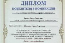 Под руководством Жакуповой Марии Георгиевны Антон стал победителем в номинации «За нестандартный подход к раскрытию темы».Мы желаем Антону только побед на жизненном пути!
