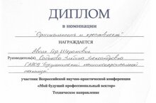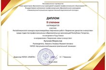 местом в Республиканском конкурсе мультимедийных творческих работ «Творческие династии в искусстве» среди студентов ПОО РТ.