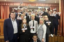 Выступили с приветственным словом и вручили студенческие билеты гости нашего мероприятия - начальник отдела топографо-геодезических работ ООО «ТНГ-групп» Айрат Ильгизович Исхаков и специалист службы информационных технологий Бугульминские электрические сети, Филиал ОАО «Сетевая компания» Павел Сергеевич Антонов.