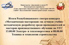 Республиканский смотр-конкурс «Методическая мастерская» на лучшую учебно-методическую разработку среди преподавателей и мастеров производственного обучения по УГС 13.00.00 Электро- и теплоэнергетика и 08.00.00 Техника и технологии строительства 29.02.2024