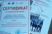 А сертификат на сумму 203 106 рублей, на обучение по основным программам профессионального обучения 15 студентов по рабочим профессиям рабочих, должностям служащих от Республиканского центра студенческих трудовых отрядов позволит расширить спектр участия наших студентов в работе СТО