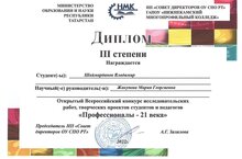 Студент 937 группы Шаймарданов Владимир, под руководством Жакуповой Марии Георгиевны, стал призером Всероссийского конкурса исследовательских работ "Профессионалы - 21 века".