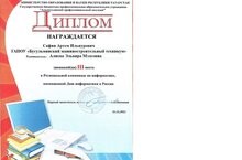 Студент группы 116-И Сафин Артем, под руководством преподавателя Алиевой Эльвиры Мэлсовны, стал призером Региональной олимпиады по информатике, посвященной Дню информатики в России.