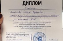 Преподаватели нашего техникума Жакупова Мария Георгиевна и Гатауллина Валентина Владимировна, приняли участие в Республиканском конкурсе авторских методических разработок в сфере воспитания, за что были удостоены диплома II степени. А Ханбикова Салися Вазыховна была удостоена диплома I степени в Республиканском конкурсе методических разработок по электротехническим дисциплинам (среди педагогических работников профессиональных образовательных организаций)Поздравляем с заслуженной наградой и желаем дальнейших успехов!