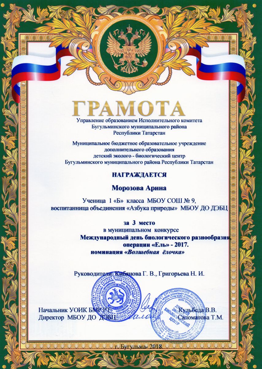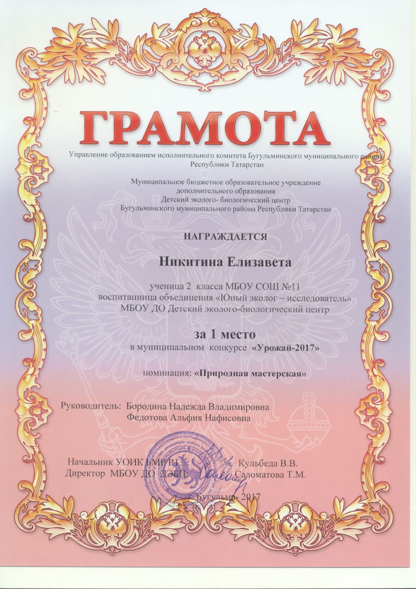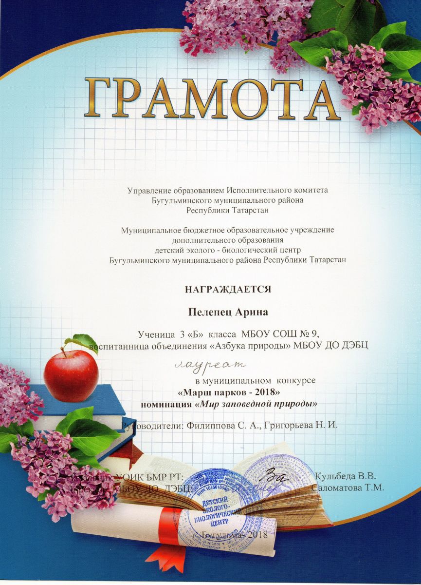 Муниципальное бюджетное образовательное учреждение дополнительного образования детский эколого-биологический центр Бугульминского муниципального района Республики Татарстан