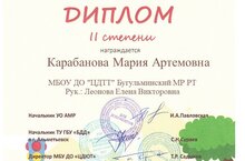 8 ноября подведены итоги Регионального конкурса «Я в безопасности!». В номинации: «Фотоколлаж», обучающаяся МБОУ ДО ЦДТТ Карабанова Мария, получила диплом II степени, руководитель Леонова Елена Викторовна.
