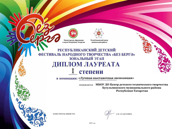 20. Республиканский конкурс дополнительных общеобразовательных программ по приоритетным направлениям дополнительного образования детей, подноминация «Техническая направленность» Диплом 3 место