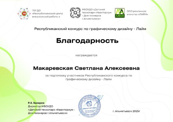 14. Республиканский конкурс по графическому дизайну-Лайм Благодарность