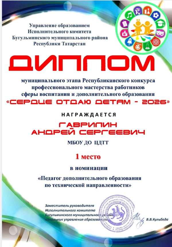 28. Муниципальный этап Республиканского конкурса профессионального мастерства работников сферы воспитания и дополнительного образования «Сердце отдаю детям-2026» Диплом 1 место