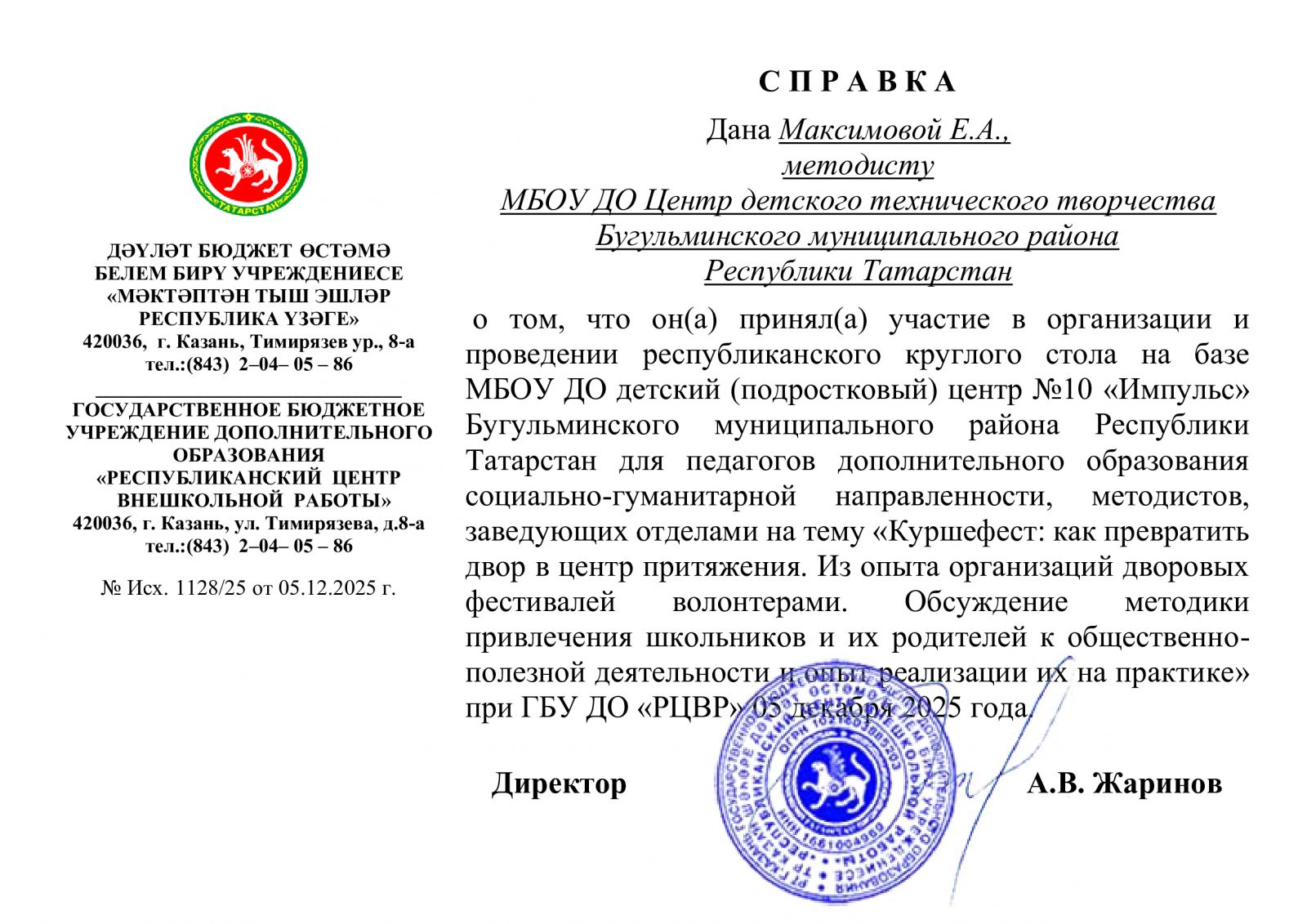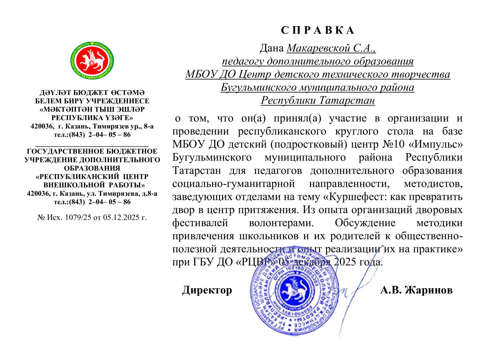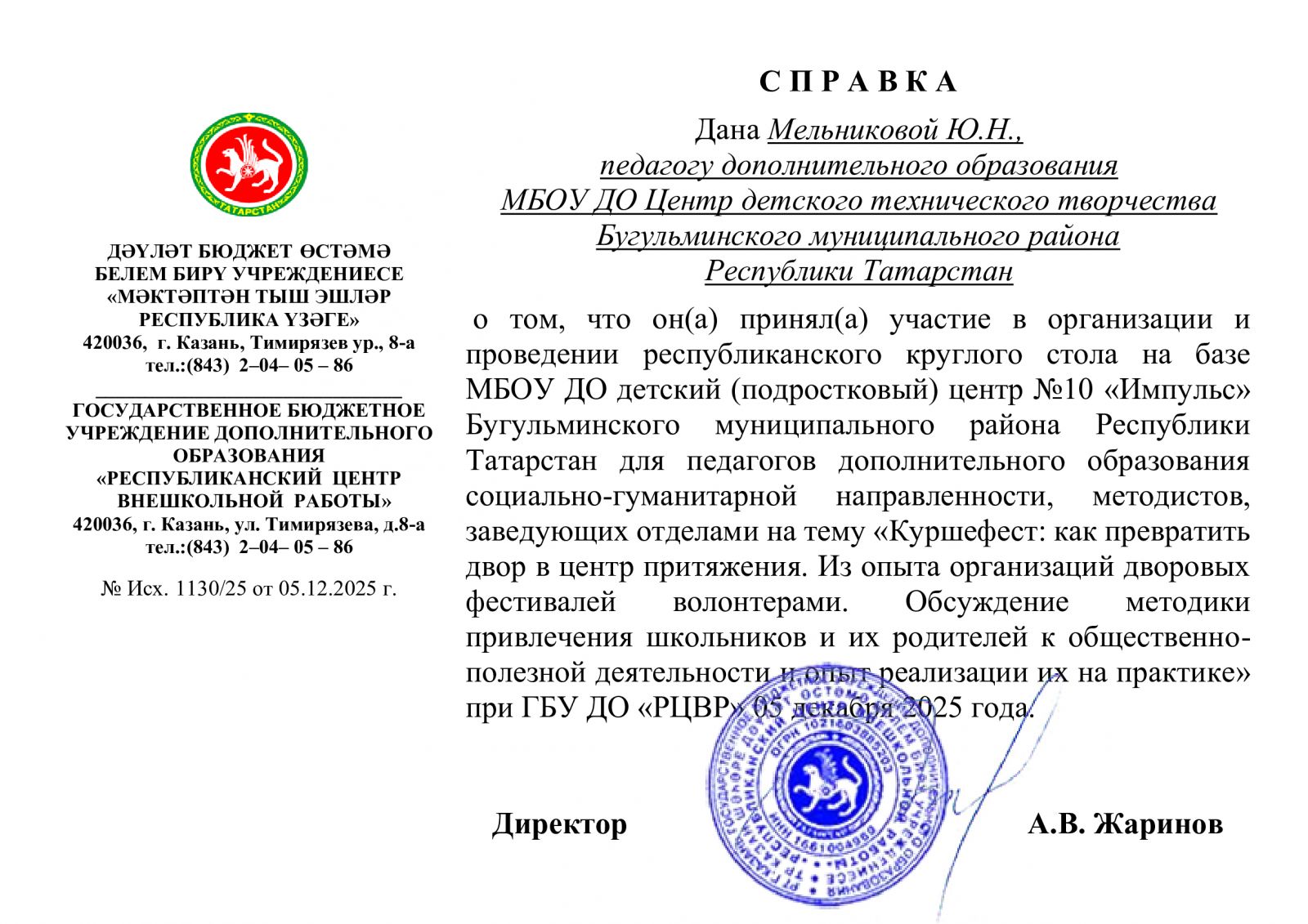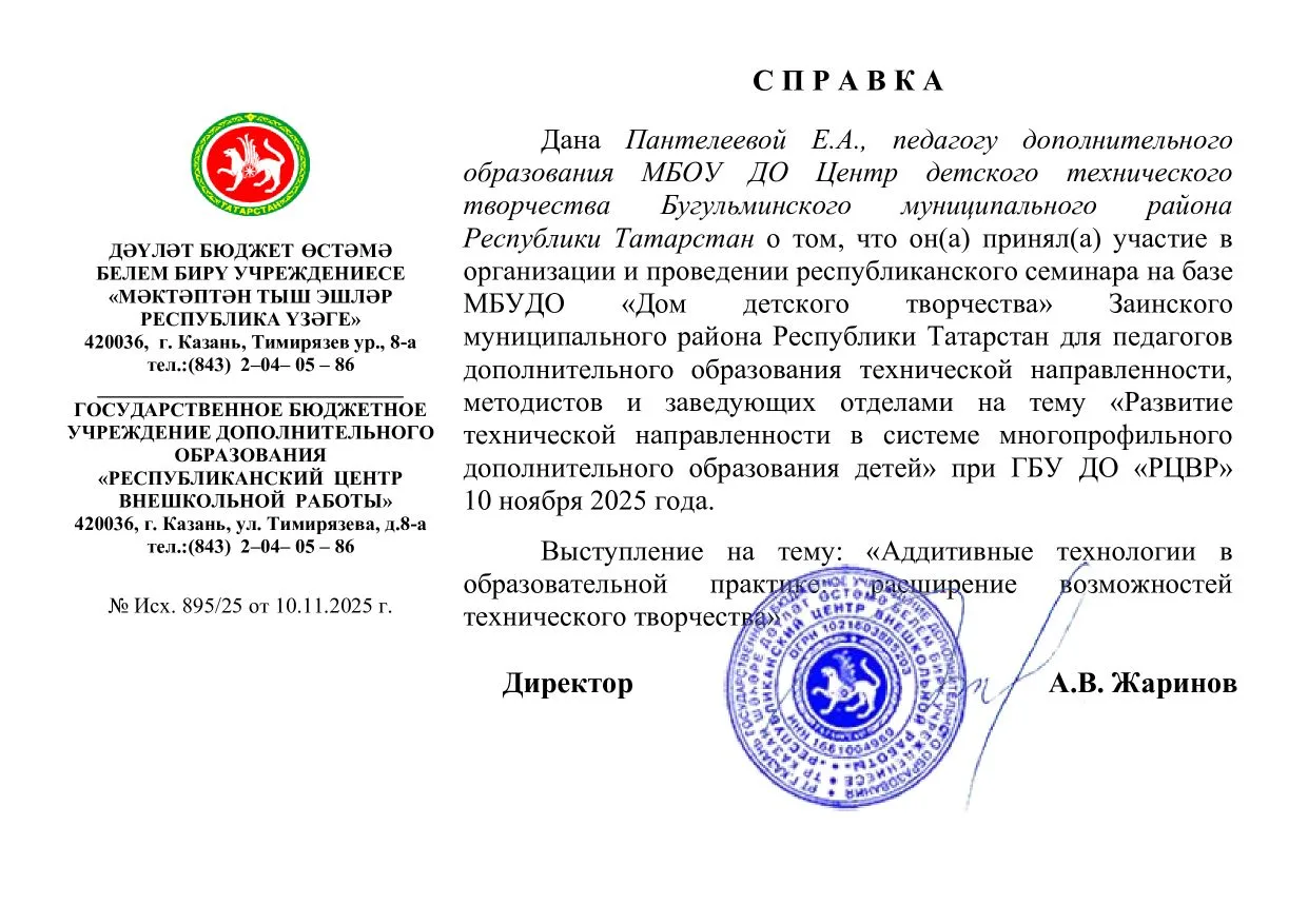 2. Республиканская образовательная стажировка по теме "Информационные технологии. Применение ИИ чатов в образовательном процессе. Разработка веб-приложений. Технология виртуальной реальности" на базе МБОУ ДО "Детский технопарк "Кванториум" - Дом пионеров" г.Альметьевск Свидетельство Свидетельство Свидетельство Свидетельство