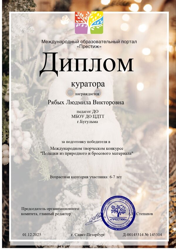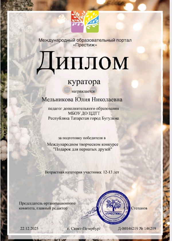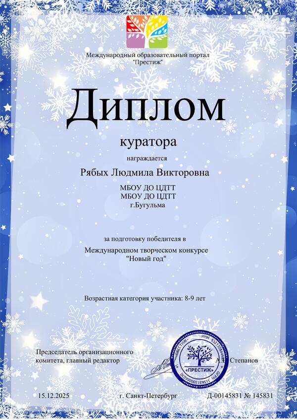 15. Международный творческий конкурс «Новый год» Диплом куратора