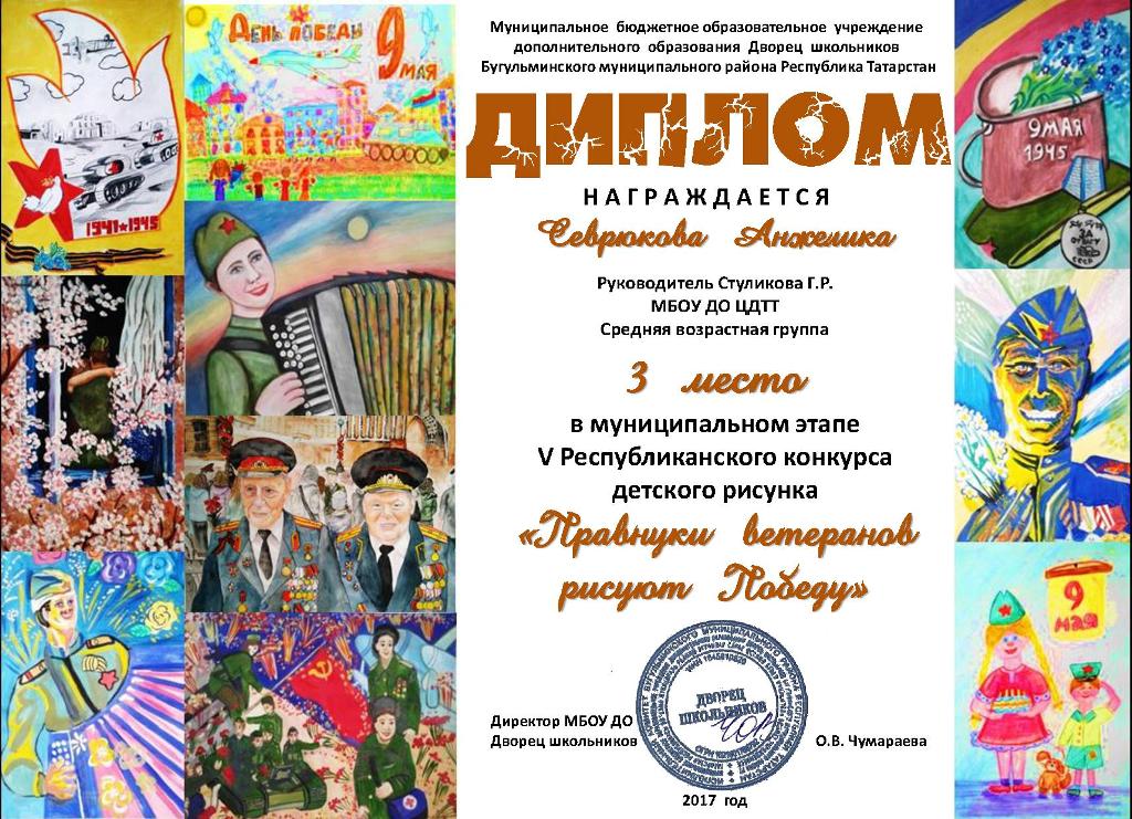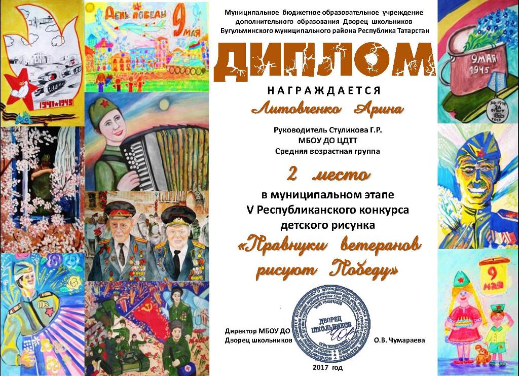 2 место – Литовченко Арина 13 лет, «Поздравляю, дедушка!», руководитель Стуликова Г.Р. МБОУ ДО ЦДТТ