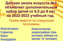 Объявляется дополнительный набор на 2022-2023 учебный год для детей от 6,5 до 9 лет!