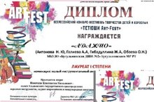 Наши преподаватели принимают участие в конкурсах наравне с учениками. Преподаватель теории музыки Ильянова Ольга Вячеславовна заняла 2 место в номинации "Методические работы" во всероссийском фестиваль-конкурсе имени Раиса Нагимова "Урсал тауда".