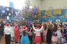 Новогодний утренник в нашей школе начался театрализованным музыкальным представлением. Дети с удовольствие водили хоровод, рассказывали стихотворения.