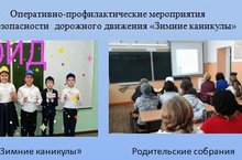 С 21 декабря 2022 года по 8 января 2023 года прошли информационно-пропагандистские мероприятия «Зимние каникулы». В рамках этой акции, в преддверии начала зимних школьных каникул была организована работа среди родителей и несовершеннолетних. Проводились «минутки безопасности» по соблюдению правил перехода проезжей части дороги и популяризации использования световозвращающих элементов, выбору безопасных мест для зимних игр и удаленных от проезжей части дорог, были проведены инструктажи среди родителей по вопросам безопасной перевозки несовершеннолетних пассажиров автомобильным транспортом, профилактики нарушений несовершеннолетними пешеходами, в т.ч. пропаганде использования ими на верхней одежде световозвращающих элементов в темное время суток.