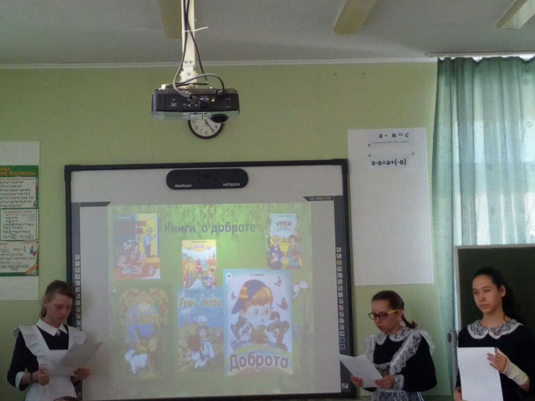 16 марта, в рамках акции «Неделя добра», учащиеся 5 класса защищали свои проекты по теме «Дорогою добра». Самостоятельная творческая деятельность была реализована учащимися совместно с классным руководителем Пугачевой Н.М. Важная часть занятия – создание благоприятного эмоционального фона, атмосферы сотрудничества, сотворчества, что способствовало раскрытию личностных качеств учащихся. На данном мероприятии дети получили знания о правильном поведении в обществе, дарить радость окружающим людям, доброту и быть всегда милосердными.