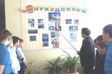 В холле второго этажа оформлена выставка рисунков «Дорога в Космос». Директор школы Исаев В.И. провел экскурсию по выставке , рассказал ребятам о полете первого космонавта планеты Ю. А. Гагарина и главном конструкторе академике С. П. Королеве. Дети с удивлением и большим вниманием слушали сообщение о первом в мире полете человека в космическое пространство.