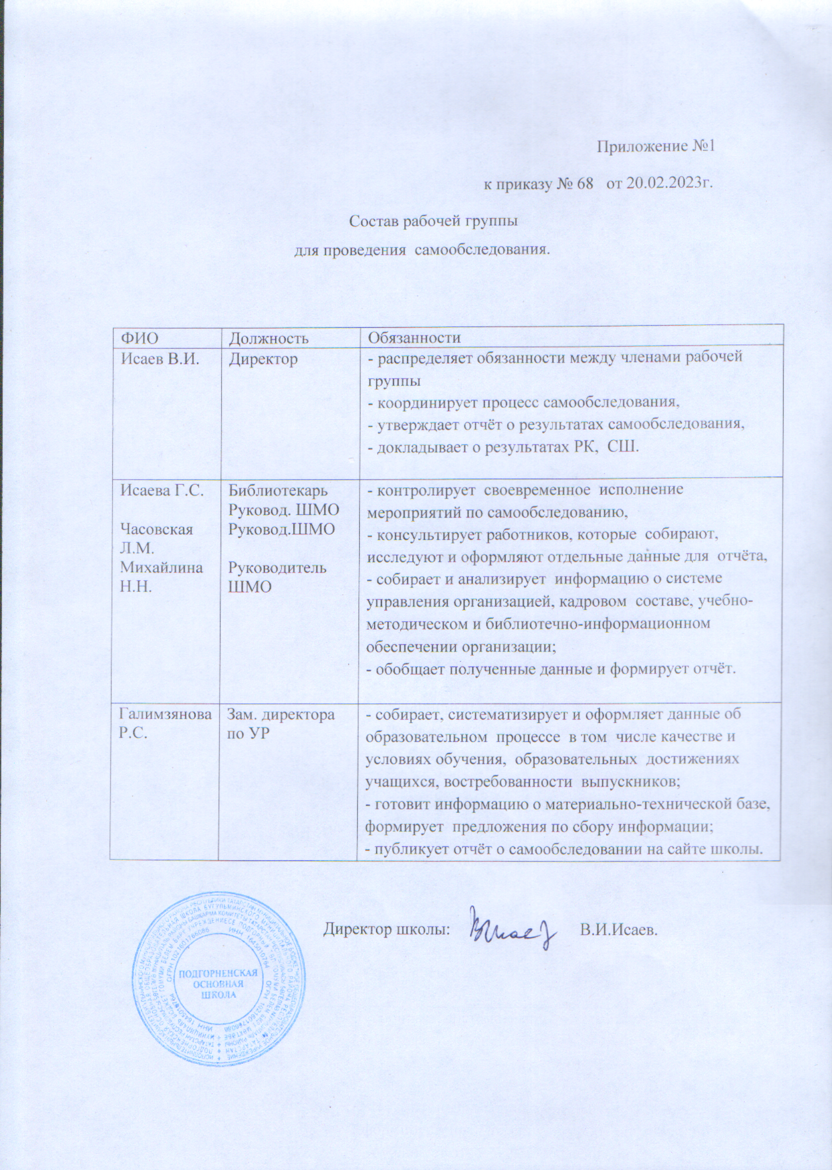Состав рабочей группы на проведение самообследование