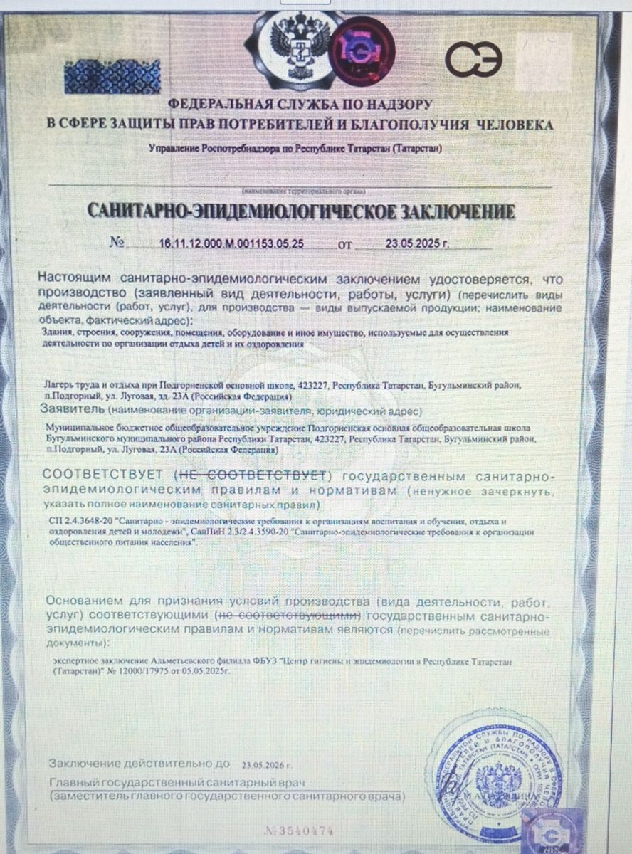 Адрес: 423227 Республика Татарстан, Бугульминский район , п.Подгорный,Луговая ,23а