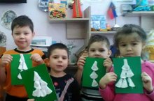 Аппликация "Ах какая елочка" из ватных дисков. 11.12.2017