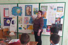Уроки и тематические классные часы закончились выставкой рисунков «Дню космонавтики посвящается»