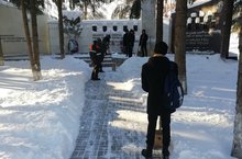 Учащиеся 10а класса несут Вахту памяти у памятника воинам-интернационалистам. Их работа заключается в очищении от снега памятник солдатам, погибшим в Афганистане и во время военных конфликтов на Кавказе, честно выполняя воинский долг.