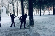 31 января учащиеся 7б класса были в городском саду, убирали снег у памятника воинам-интернационалистам. Семиклассники регулярно несут Вахту памяти: летом содержат в чистоте памятник и близлежащую территорию, а зимой очищают от снега.