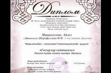 Поздравляем ученицу 6а класса Миннегулову Айгуль (учитель Шарифуллина Ф.Ф.) с победой в межрегиональном конкурсе исследовательских работ "Гасырлар кайтавазы" в номинации "Борынгыдан - киләчәккә".