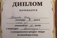 с призовым местом в муниципальном конкурсе чтецов на английском языке