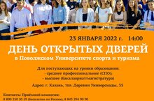 23 января 2022 года в 14.00 часов ФГБОУ ВО "Поволжский государственный университет физической культуры, спорта и туризма" приглашает на ДЕНЬ ОТКРЫТЫХ ДВЕРЕЙ в ОЧНОМ формате.