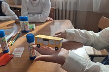 В ходе урока ребята не только узнали о правилах поведения в транспорте и на дороге, но и сами построили макет городского пространства с дорогами, остановками, пешеходными переходами и транспортом. Каждый ученик принял участие в создании проекта: мастерив автобус.